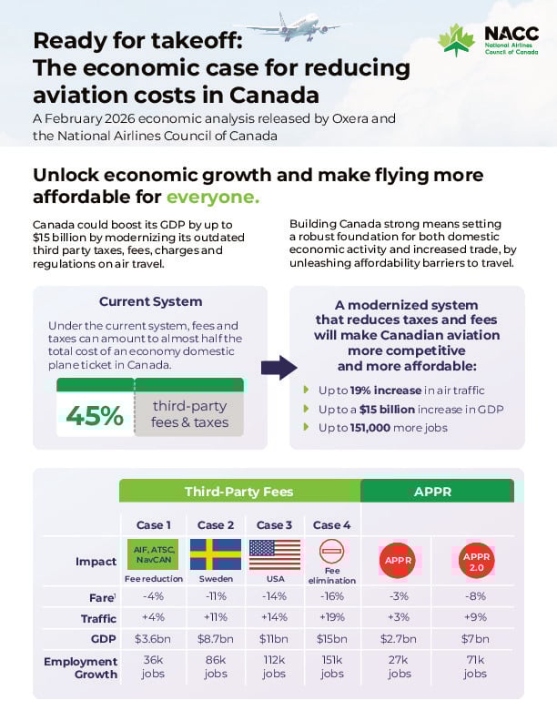 The NACC seeks positive regulatory and legislative changes to increase the Canadian aviation industry’s competitiveness and allow airlines to do what they do best- create jobs and stimulate trade and travel.